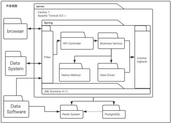 开发视图用于描述系统的模块划分和组成,以及细化到内部包的组成设计,服务于开发人员,反映系统开发实施过程。