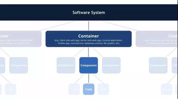 C4 模型使用容器(应用程序、数据存储、微服务等)、组件和代码来描述一个软件系统的静态结构。